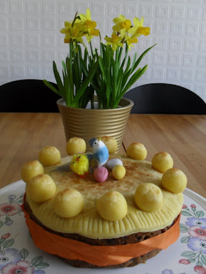 (Traditional Simnal cake - the 11 marzipan balls represent the apostles. Judas doesn't get one)